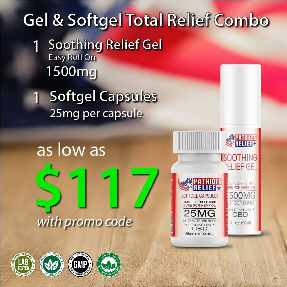 Patriots Relief Softgel Capsules provide 25mg of True Full Spectrum CBD per capsule. Taking our CBD Softgels is an easy and convenient way to get your daily serving of CBD and is especially great for those individuals that are on the go.