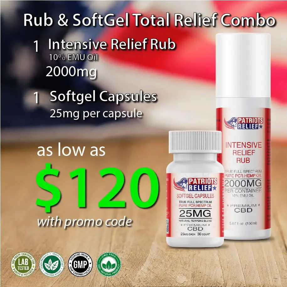 Patriots Relief Softgel Capsules provide 25mg of True Full Spectrum CBD per capsule. Taking our CBD Softgels is an easy and convenient way to get your daily serving of CBD and is especially great for those individuals that are on the go.